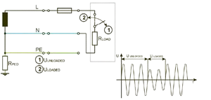 دستگاه تست به ولتاژ اصلی متصل میگردد، افت ولتاژ در دو حالتی که مقاومت بار داخل مدار بوده یا نباشد سنجیده میگردد این مقدار بر میزان جریان تست که حاصل تقسیم میزان ولتاژ دو سر مقاومت بار بر مقدار مقاومت است تقسیم شده و میزان مقاومت خط بدست میآید.