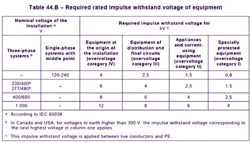 مشاهده می‌شود که بر اساس حساسیت تجهیزات، همچنین 3فاز یا تکفاز بودن سیستم توزیع و ولتاژ کاری آن بایستی ولتاژ ضربه (عایقی) مناسب در نظر گرفت.